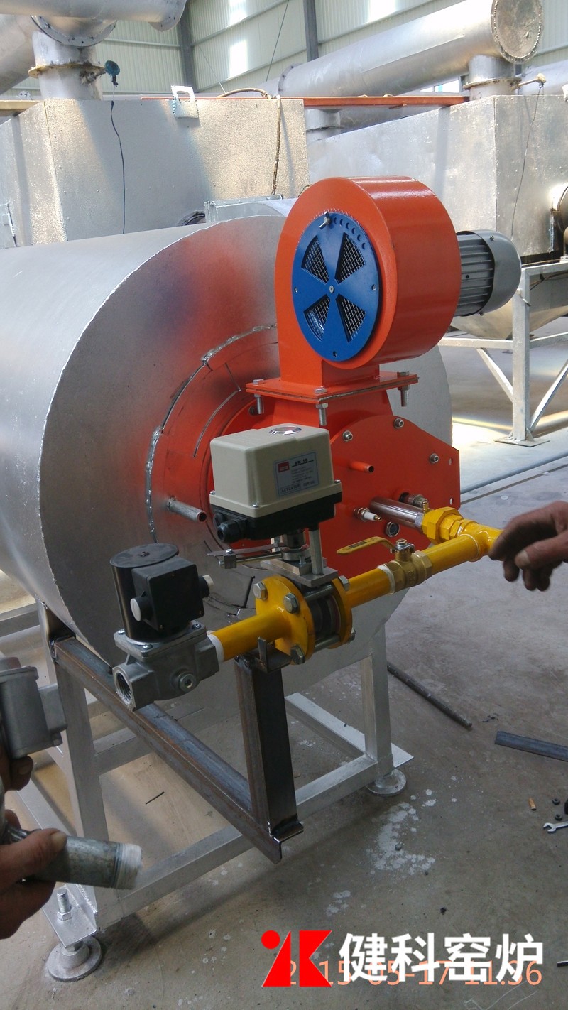 热风炉主要由燃烧机、燃烧室组成。相对于燃煤、生物质热风炉,该热风炉燃烧所产生的烟气干净,洁净度高,燃料燃尽率高,控制精度高。